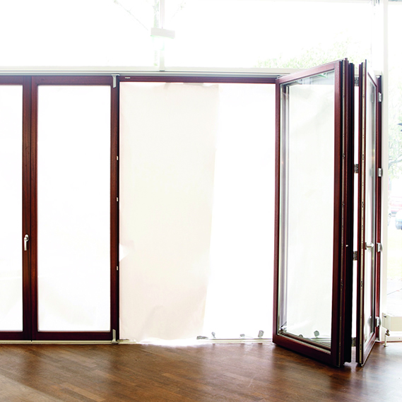 Todos los elementos de puerta están plegados con escasa necesidad de espacio y son deslizados lateralmente para un óptimo aprovechamiento del espacio.
